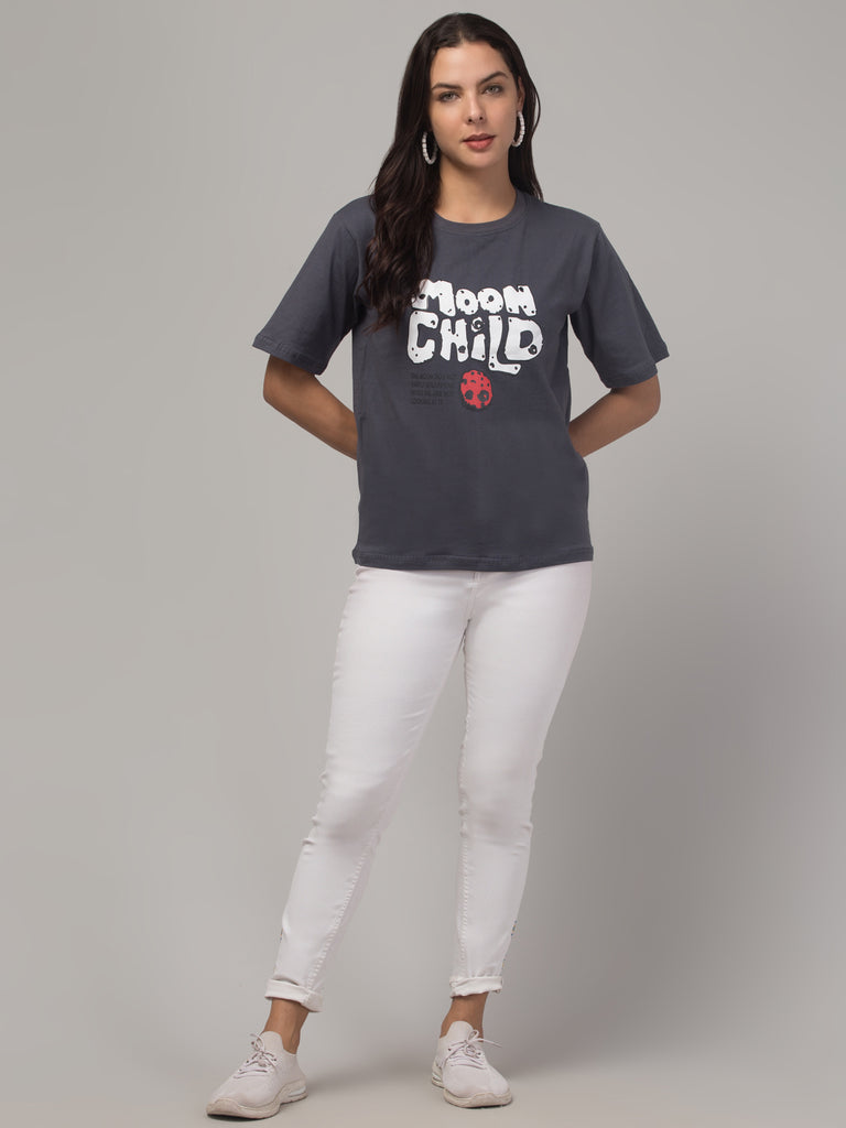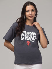 Name : OVERSIZE MOON CHILD PRINTED COOL BLACK T_SHIRT FOR GIRLS AND WOMENS