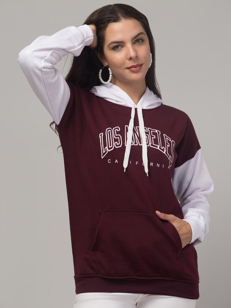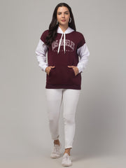 Name : Myali Women's Colorblocked Sweatshirt with Hoodies & Print (Wine)